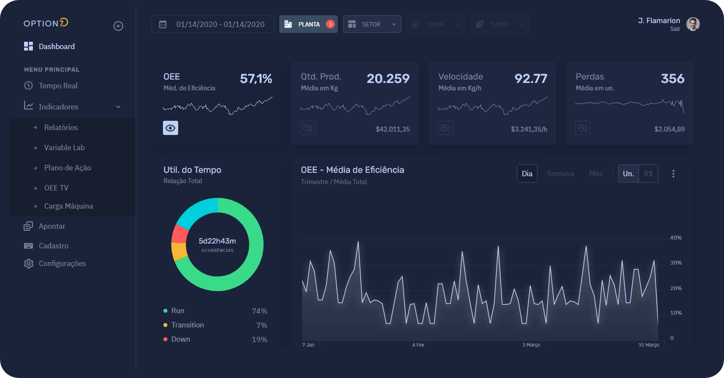 Saiba a performance de cada linha, cada setor e a planta como um todo.